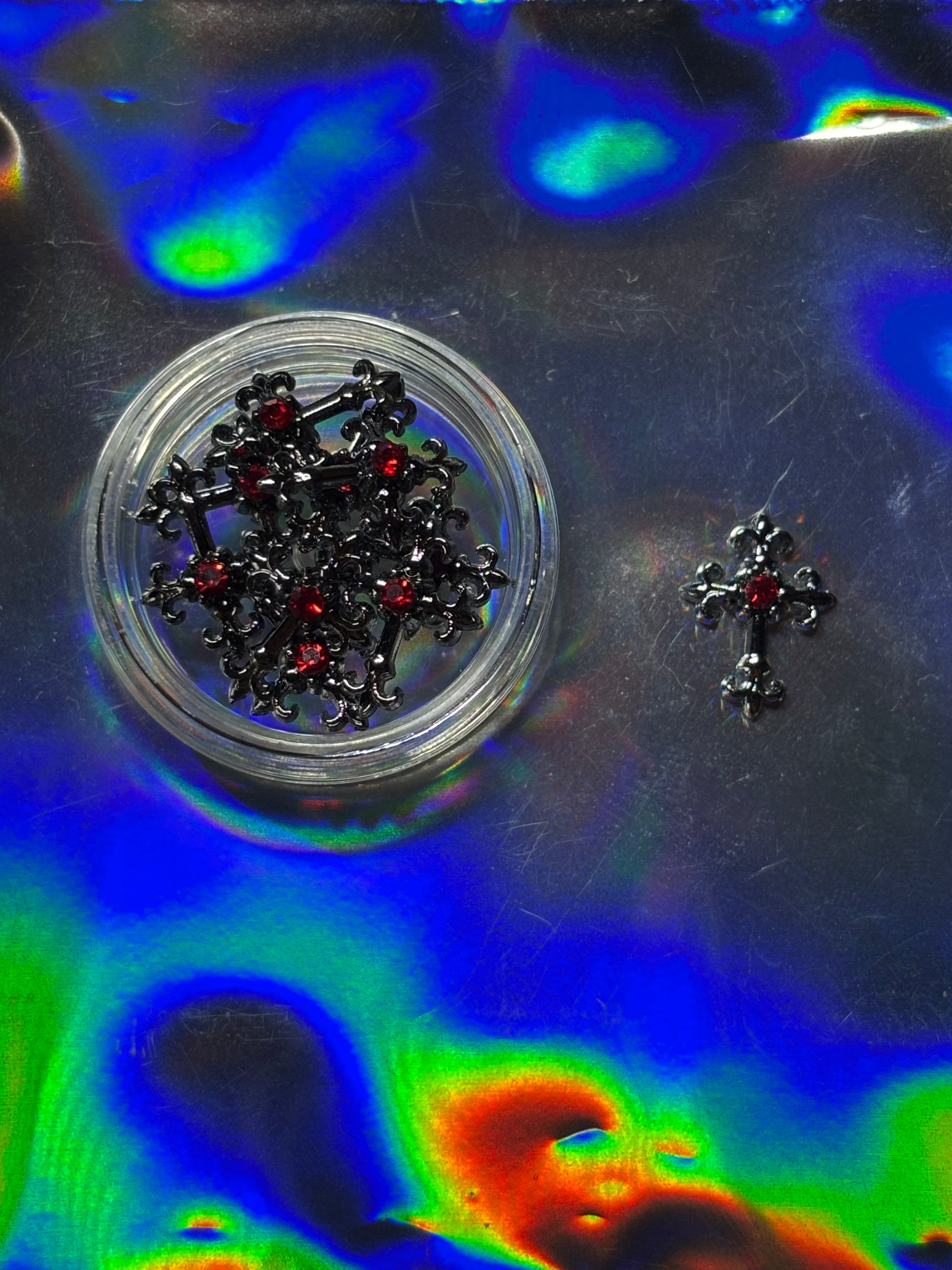 Adaugă o notă de mister și eleganță manichiurii tale cu aceste cruci 3D aurii, perfecte pentru un look gotic, luxury sau celestial.